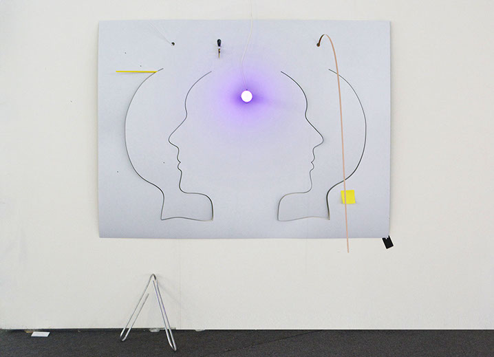 Beatriz Olabarrieta, Drawing telepathy is getting bigger (2017) Laminate board, lightbulb, cable, straws, post-it 122 x 165 cm.