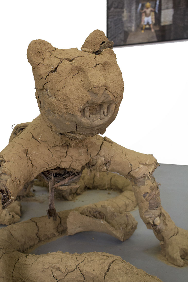 The exhibition propose through a mythical transfiguration, a relearning of community fables, which are opened as a living discourse with a different temporality, with the objective to re-define landscapes according to the construction and cosmogonic reality of its own culture, radically opposing the disruption caused by ambition and domination of land resources and territory by extractive economic interests.