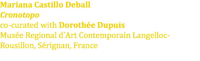Mariana Castillo Deball Cronotopo co-curated with Dorothée Dupuis Musée Regional d ́Art Contemporain Langelloc-Rousillon, Sérignan, France