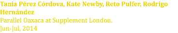 Tania Pérez Córdova, Kate Newby, Reto Pulfer, Rodrigo Hernández Parallel Oaxaca at Supplement London. Jun-Jul, 2014