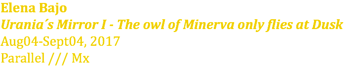Urania´s Mirror I - The owl of Minerva only flies at Dusk Aug04-Sept04, 2017