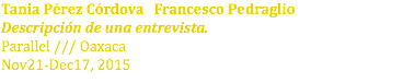 29 abr - 07jun, 2016 2015 Tania Pérez Córdova Francesco Pedraglio Descripción de una entrevista.