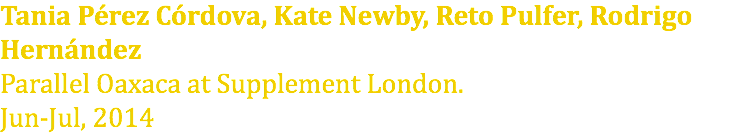 Tania Pérez Córdova, Kate Newby, Reto Pulfer, Rodrigo Hernández Parallel Oaxaca at Supplement London. Jun-Jul, 2014