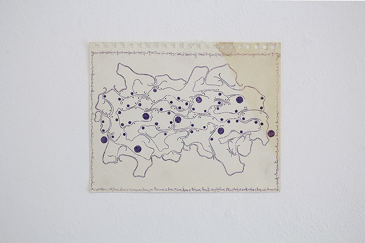 By constructing referential systems that expand possible mobile route,s personified by maps or presences, the works shape a notion between entropy and geometry, where the form is originated by energy and becomes narrative for iconoclastic explorations.