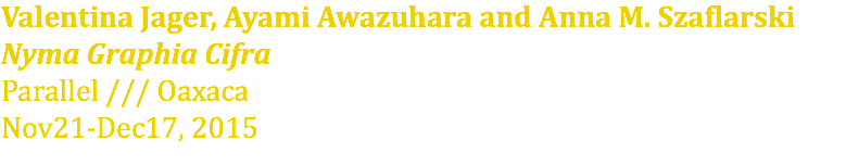 Parallel Oaxaca se complace en presentar Nyma Graphia Cifra, exposición y publicación de Ayami Awazuhara, Valentina Jager y Anna M.Szaflarski.